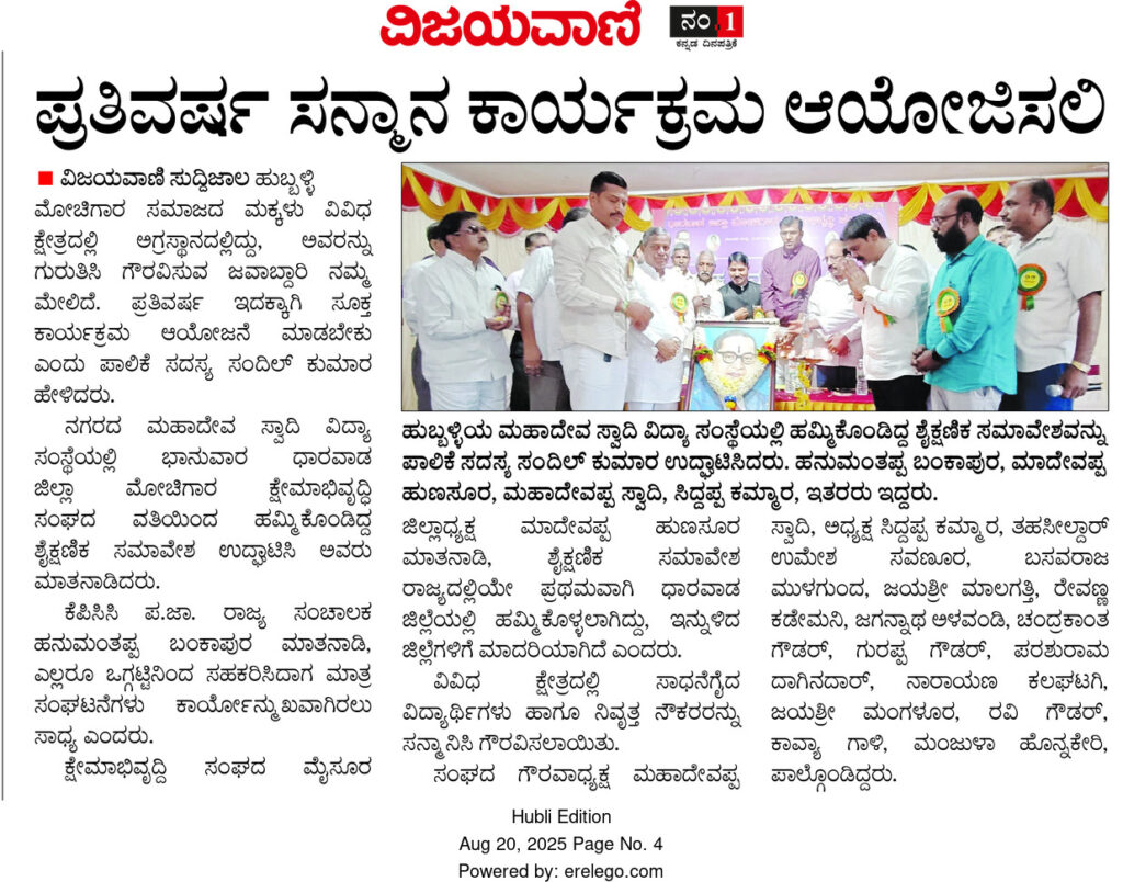 2025 ಧಾರವಾಡ ಜಿಲ್ಲಾ ಕ್ಷೇಮಾಭಿವೃದ್ಧಿ ಸಂಘ – ಶೈಕ್ಷಣಿಕ ಸಮಾವೇಶ 2025 ಪ್ರತಿಭಾ ಪುರಸ್ಕಾರ ಸಮಾರಂಭ