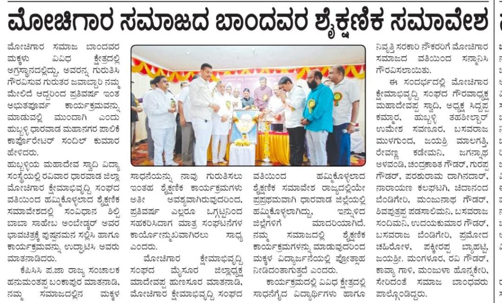 ಧಾರವಾಡ ಜಿಲ್ಲಾ ಕ್ಷೇಮಾಭಿವೃದ್ಧಿ ಸಂಘದ ಆಶ್ರಯದಲ್ಲಿ ನಡೆದ ಶೈಕ್ಷಣಿಕ ಸಮಾವೇಶ ಹಾಗೂ ಪ್ರತಿಭಾ ಪುರಸ್ಕಾರ ಸಮಾರಂಭವು ನಿಜಕ್ಕೂ ಸಂಸ್ಕೃತಿಯ ಸೊಗಡಿನಿಂದ ಕೂಡಿದ ಅದ್ದೂರಿ ಜಾತ್ರೆಯಂತಿತ್ತು. ವಿದ್ಯೆಯ ಮಹಿಮೆಯನ್ನು ಕೊಂಡಾಡಿದ ಈ ಮಹೋತ್ಸವದಲ್ಲಿ, ಸಮಾಜದ ಭವಿಷ್ಯವನ್ನು ಹೊತ್ತು ತರುವ ಪ್ರತಿಭಾವಂತ ವಿದ್ಯಾರ್ಥಿಗಳಿಗೆ ಗೌರವ ಸಲ್ಲಿಸುವ ಮೂಲಕ, ಸಂಘವು ತನ್ನ ಸಂಸ್ಕಾರ ಹಾಗೂ ಪರಂಪರೆಯ ಶ್ರೇಷ್ಠತೆಯನ್ನು ಮತ್ತೊಮ್ಮೆ ಮೆರೆದಿತ್ತು.